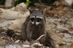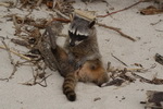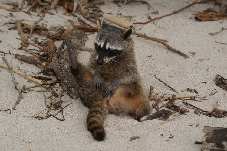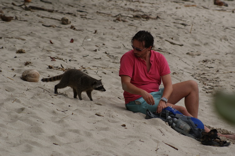 Der Waschbär kam von hinten und hat den Mann angestupst und erschreckt. Lebensmittel mussten hier in Sicherheit gebracht werden. Die Waschbären waren ganz schön diebisch - daher wohl die Augenmaske ;-)