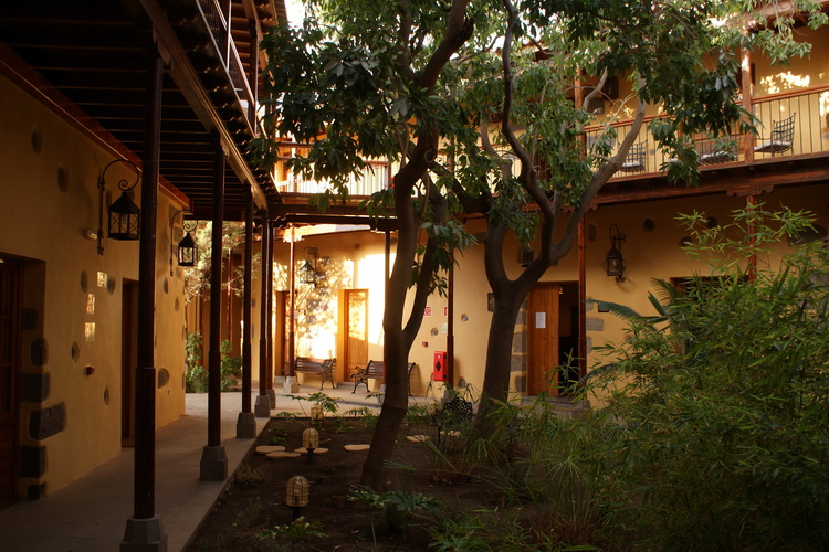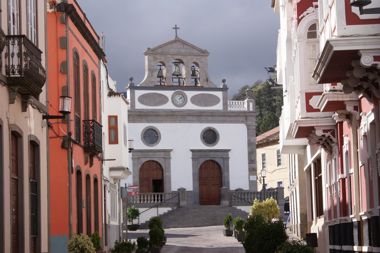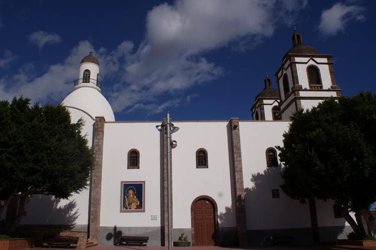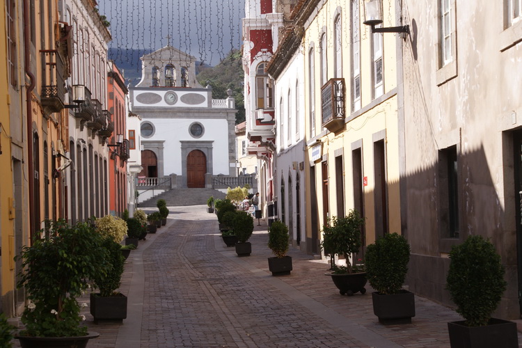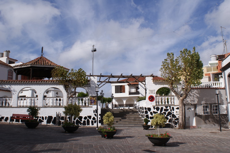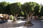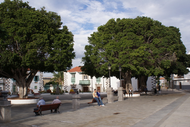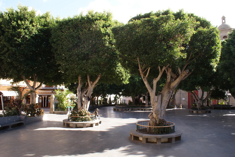 Plaza in Agüimes mit alten Bäumen und Steinbänken