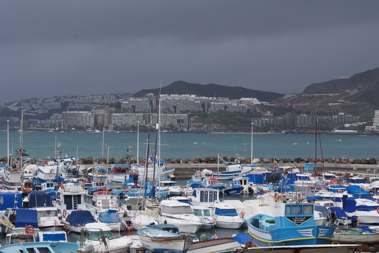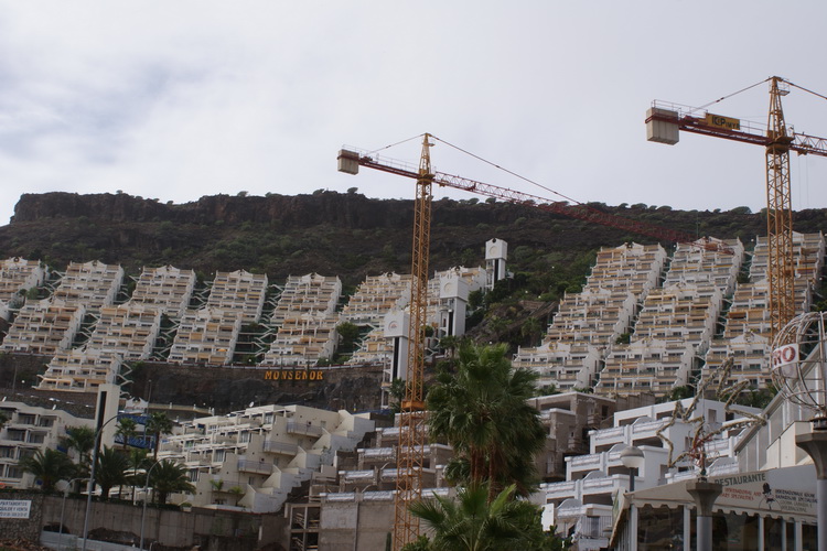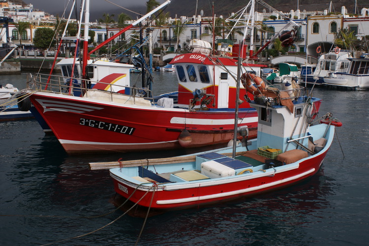 Hafen von Arguineguin, im Hintergrund Wohnung und Hotels
