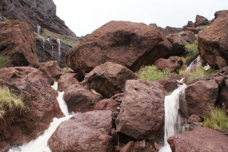 Am Ende der Schlucht von Veneguera gibt es nach Regen viele Wasserfälle