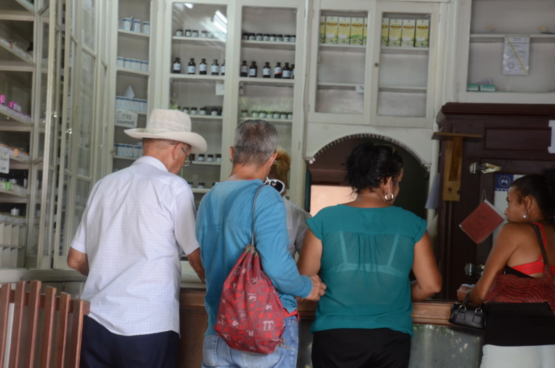 Apotheke. Viel Auswahl ist nicht zu sehen.