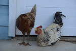 Ein Schwätzchen unter zwei gaggernden Hühnern.