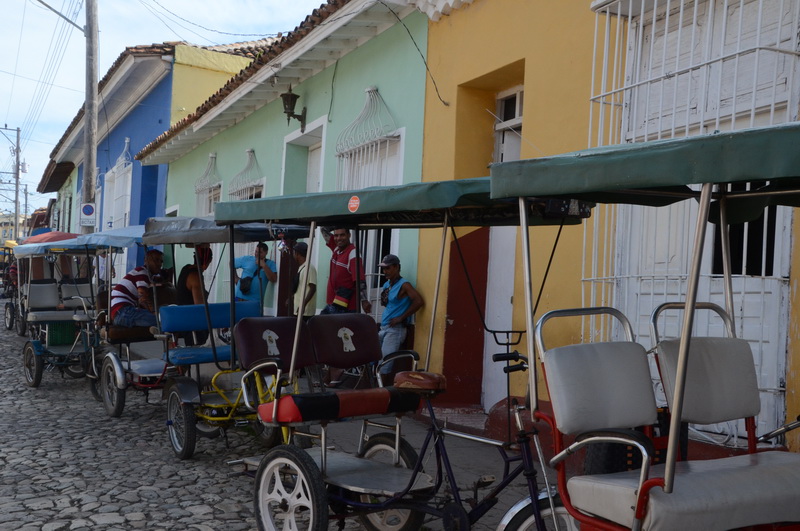 Und wieder wartende Taxis. Genauer gesagt Fahrrad-Rikschas.