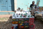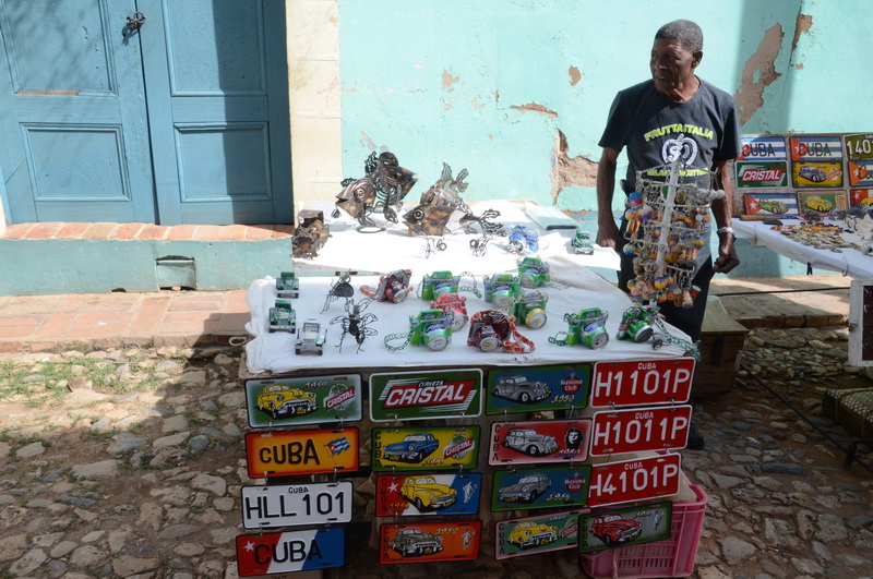 Andenkenverkäufer. Aus Cola- und Limodosen werden kunstvolle Gegenstände hergestellt.