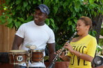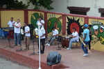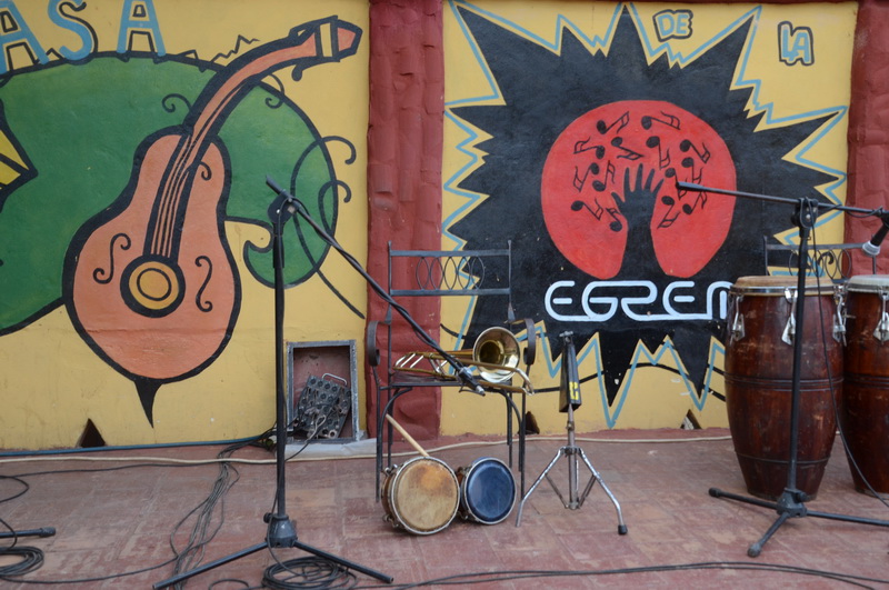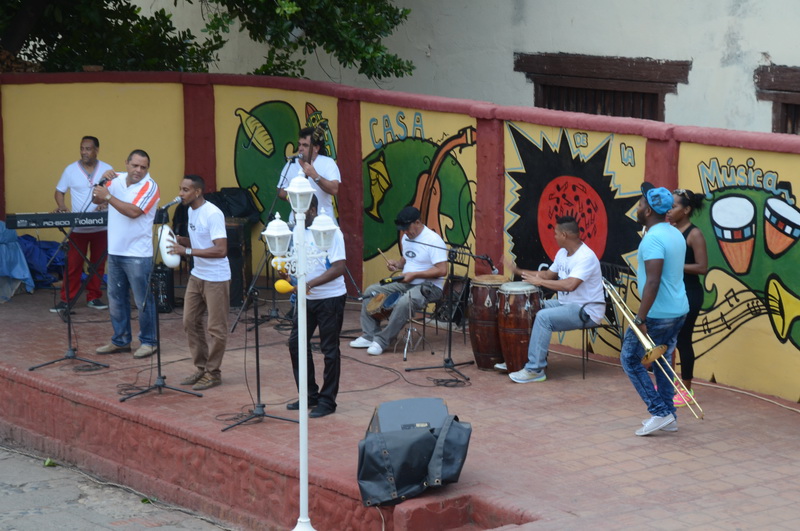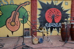 Bar mit Musik auf den Treppen bei der Plaza Mayor.