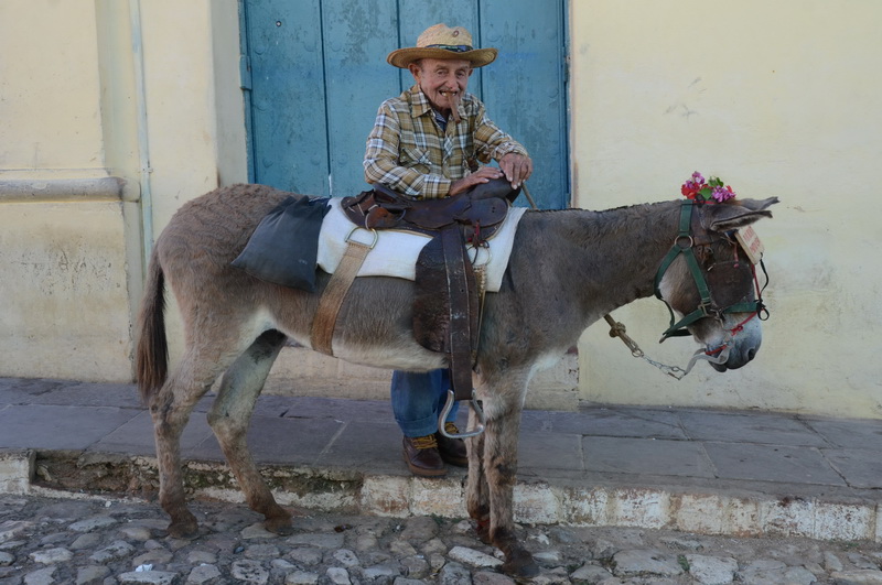 Alter Mann mit Esel. Er lässt sich für das Fotografieren bezahlen. Man muss ja sehen, wie man zu was kommt.