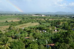 Blick in das Tal, im Hintergrund ein Regenbogen.