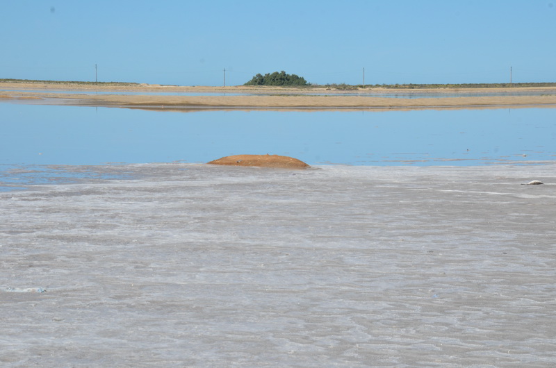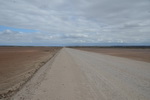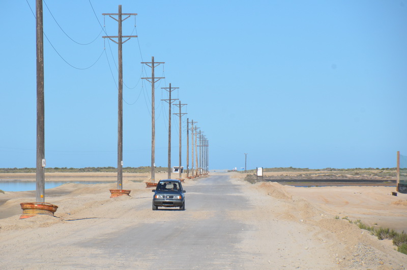 Kilometerlang geht es über die Straße zwischen den Verdunstungsbecken.