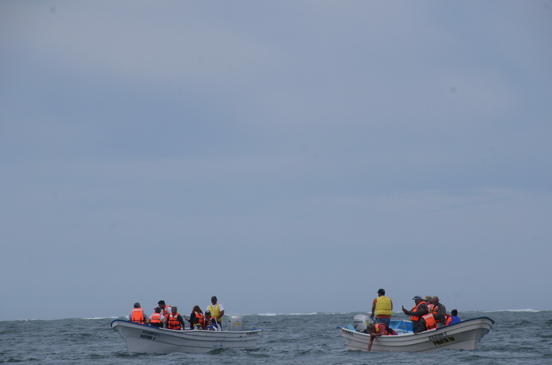 Kaum scheint irgendwo ein Wal zu sein, machen sich die Boote auf zu der Stelle.