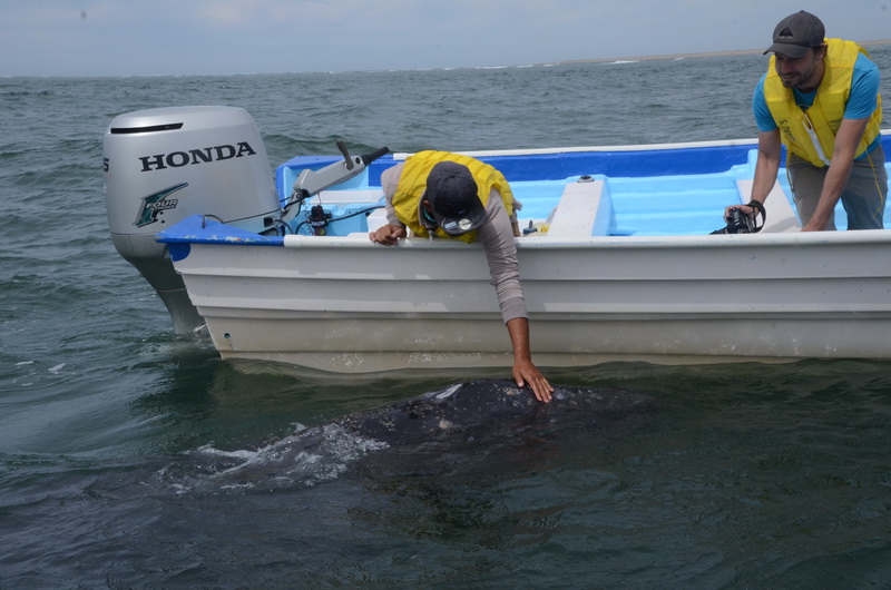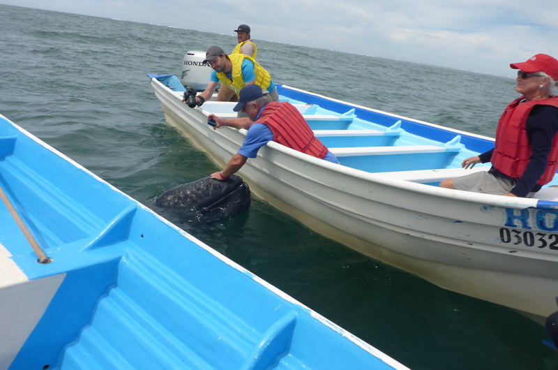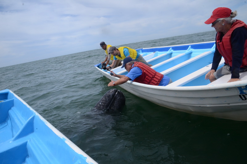 Die Touristen im Nachbarboot können den Wal problemlos streicheln.