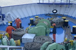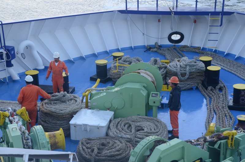 Die Männer auf der Fähre sehen aus wie Playmobil-Figuren.