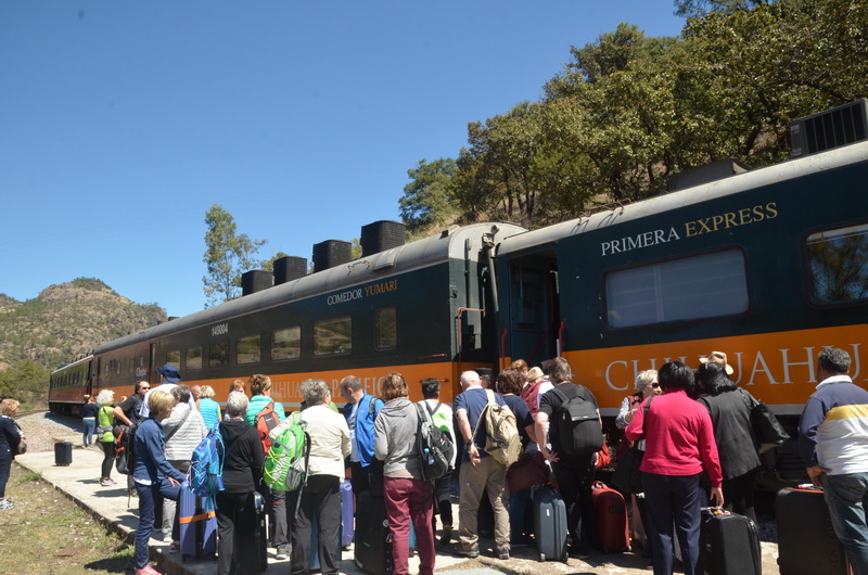 Bahnhof in Bahuichivo. Wir werden mit dem Bus zu unserem Hotel in Cerocahui gebracht.