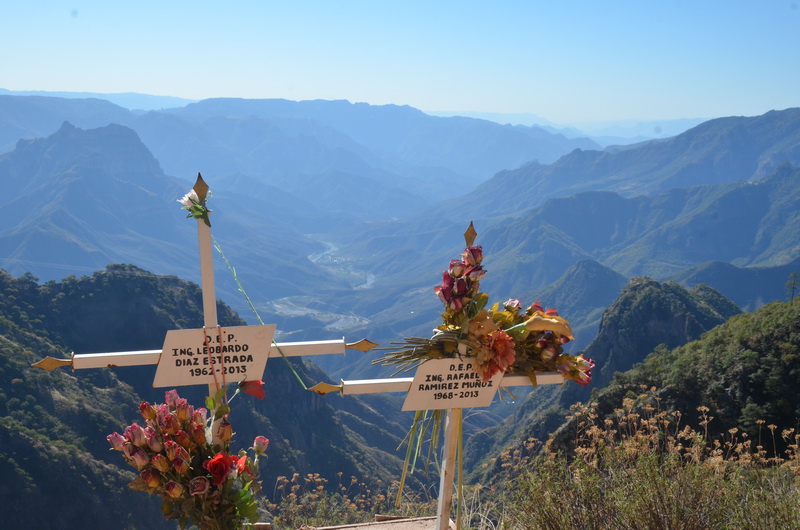 Wir wurden am Hotel abgeholt und haben einen Busausflug gemacht. Hier ist Klaus vor dem Cañon de Urique.