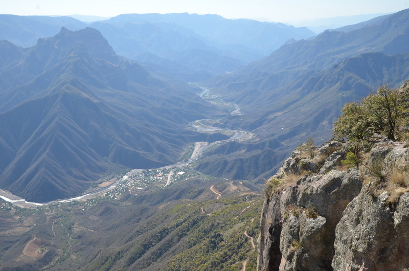 Blick in den Cañon Urique. Wir sind auf ungefähr 2.200 Meter, unten sind 500 Meter.