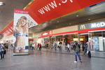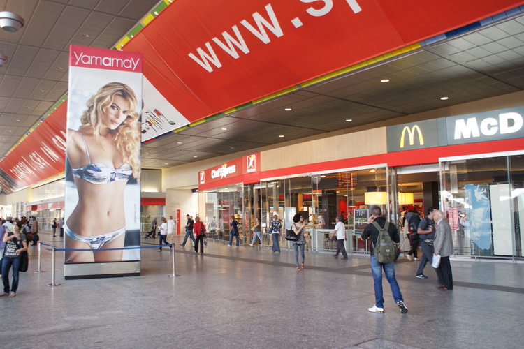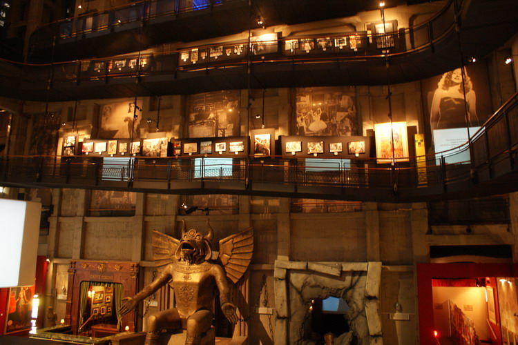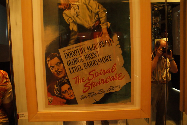 hier geht ein schräger Gang nach oben, wobei man die Vitrinen anschauen kann