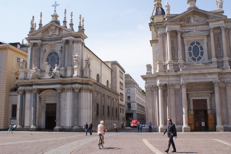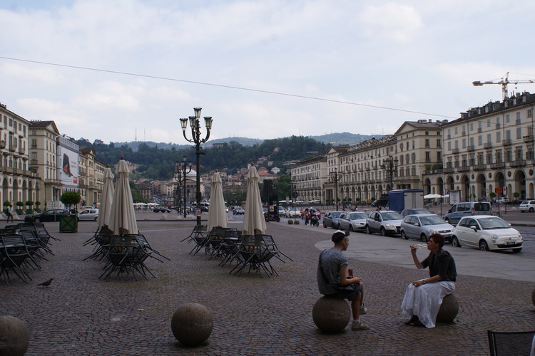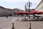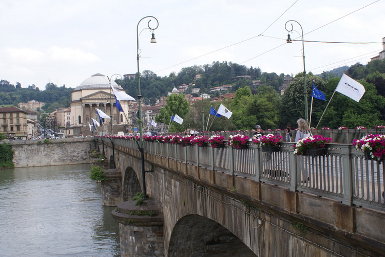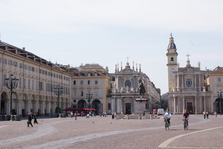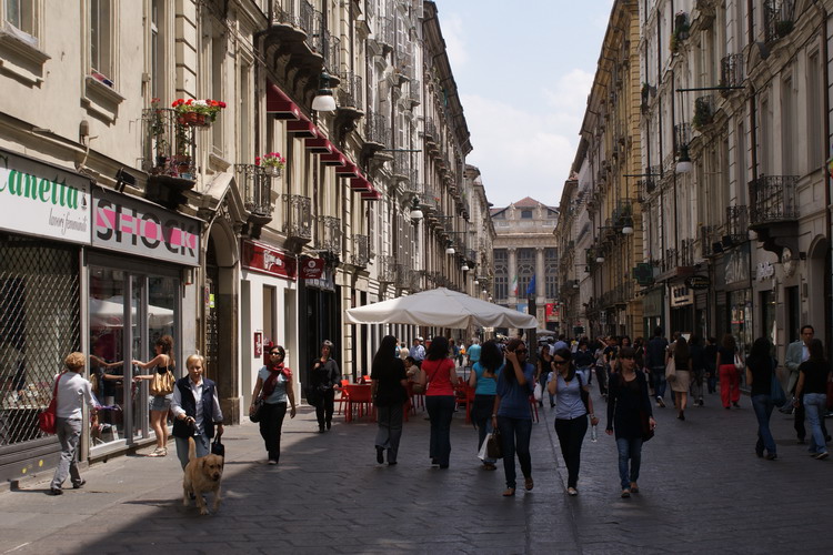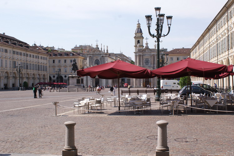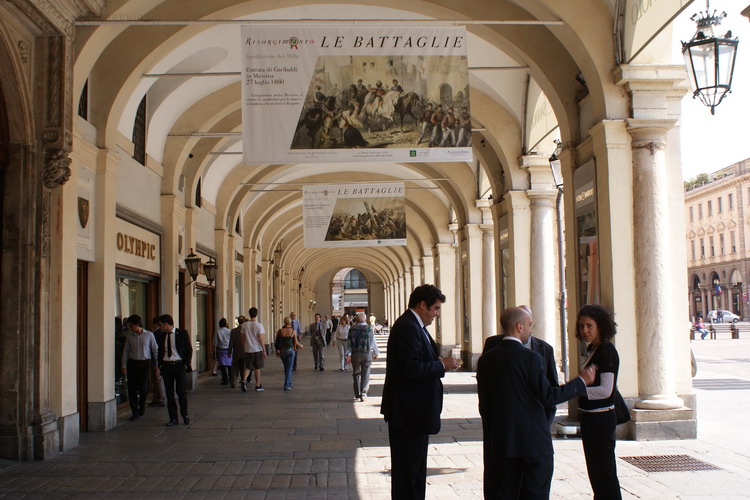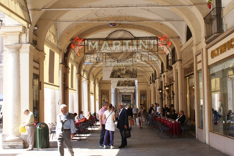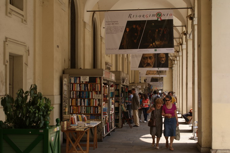 Wir haben noch nirgendwo so endlose Arkadenwege gesehen wie in Turin. Da darf es getrost mal regnen.