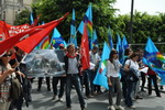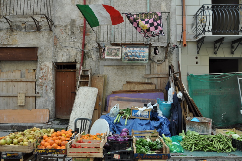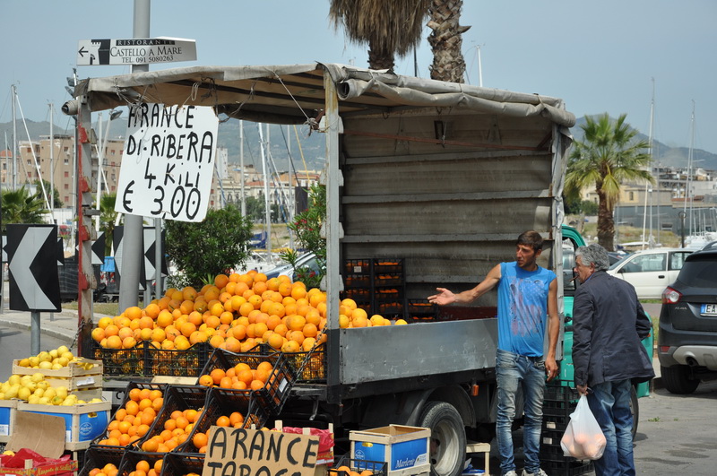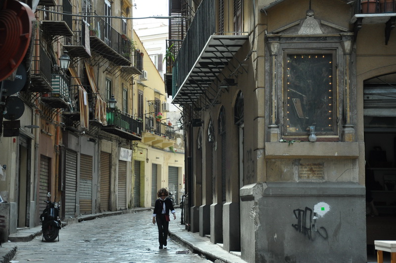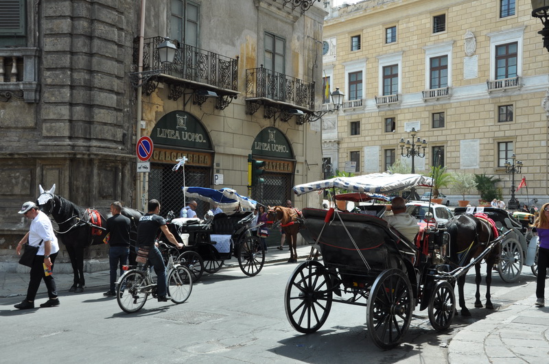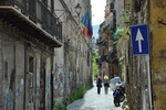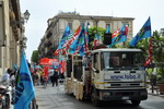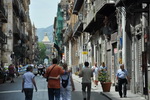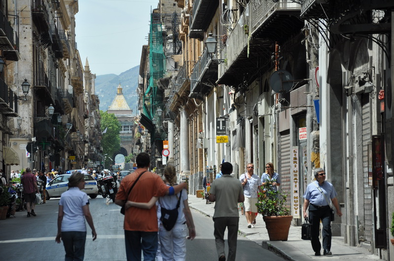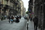 Geschäftige Straße in Palermo. Gesperrt für PKW wegen Demo.