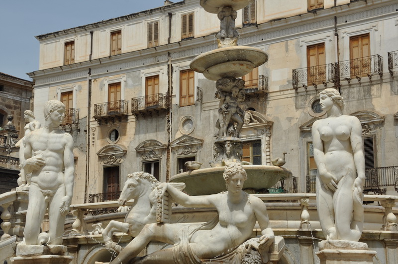 Fontana dei Pretoria, ein mit heidnischen Gottheiten und exotischen Tieren bevölkerter Brunnen