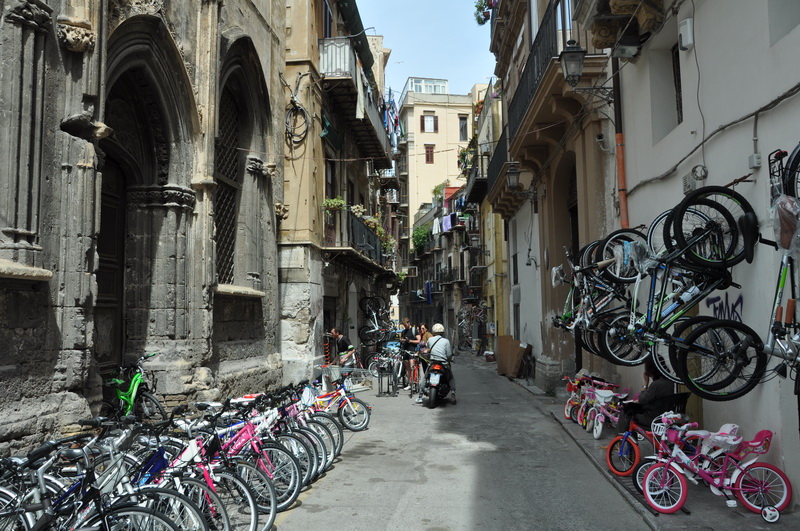 Die Fahrradgasse. Überall konnte man Räder reparieren lassen oder kaufen