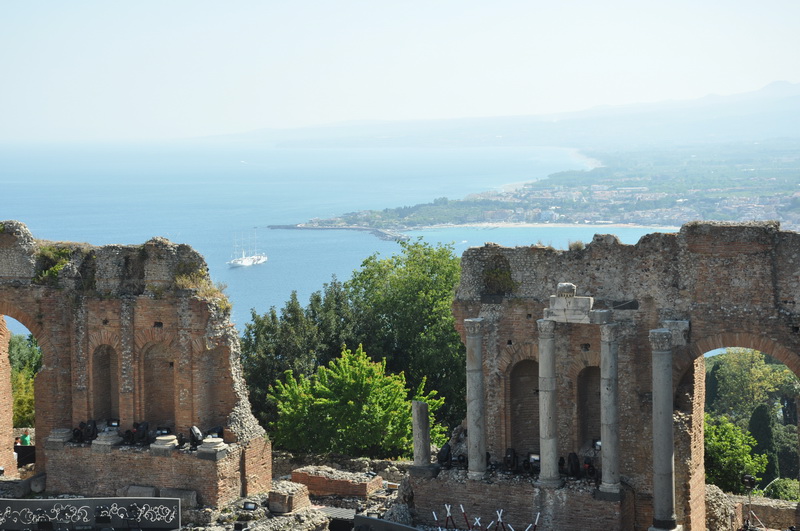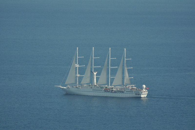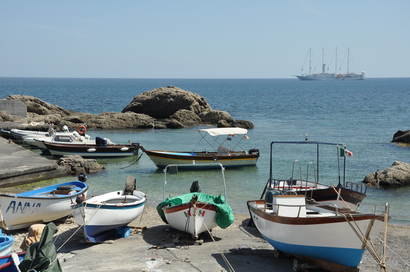 Das schöne Segelschiff erblicken wir von der Piazza IX Aprile