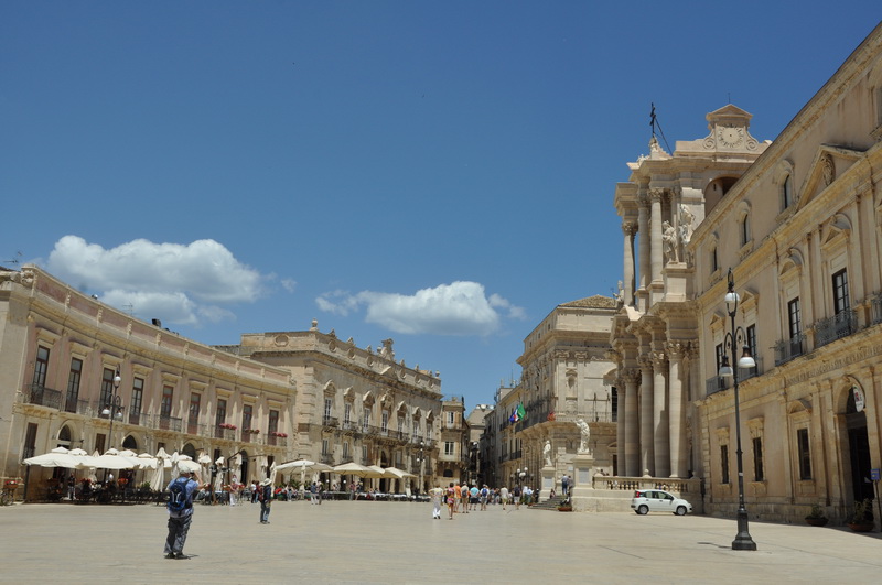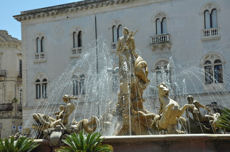 Brunnen und Paläste aus dem 14. und 15. Jh. zieren die Piazza Archimede