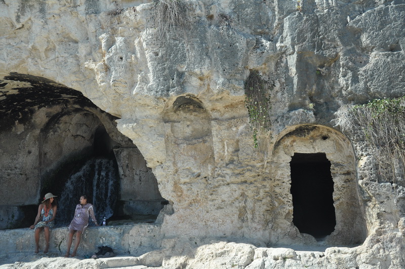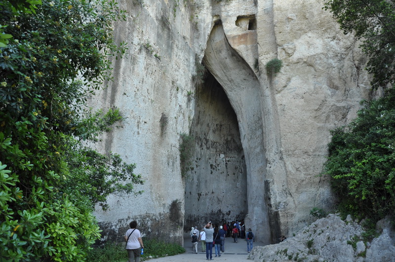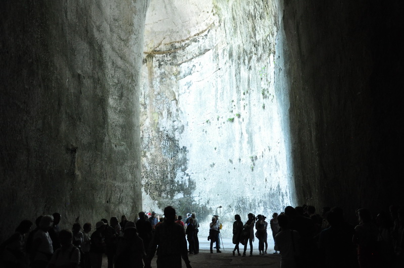 Das Ohr des Dionysios, eine künstliche Grotte von 65 m Länge, 23 m Höhe und Breite von 5 m bis 11 m