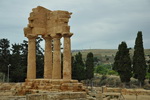 Der Castor-und Pollux-Tempel wurde zum Werbeträger Siziliens. 4 dorische, Mitte des 19. Jh. wieder aufgerichtete Säulen
