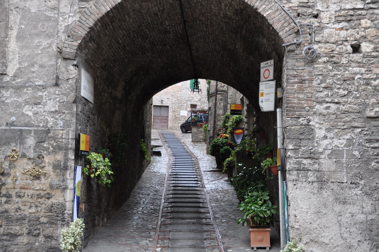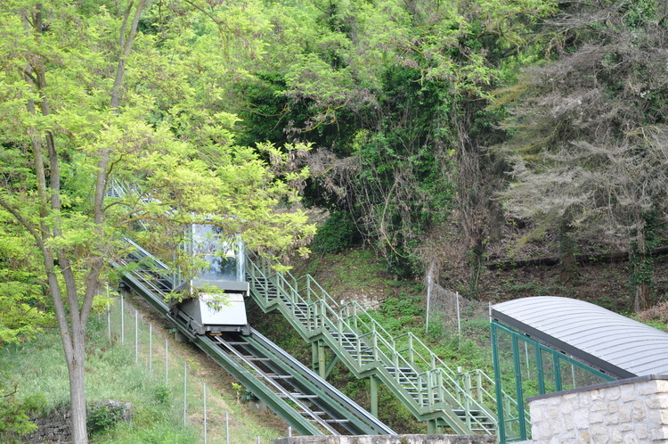 Vom Parkplatz verkehrt eine Kabinenbahn zum hoch gelegenen Städtchen Todi