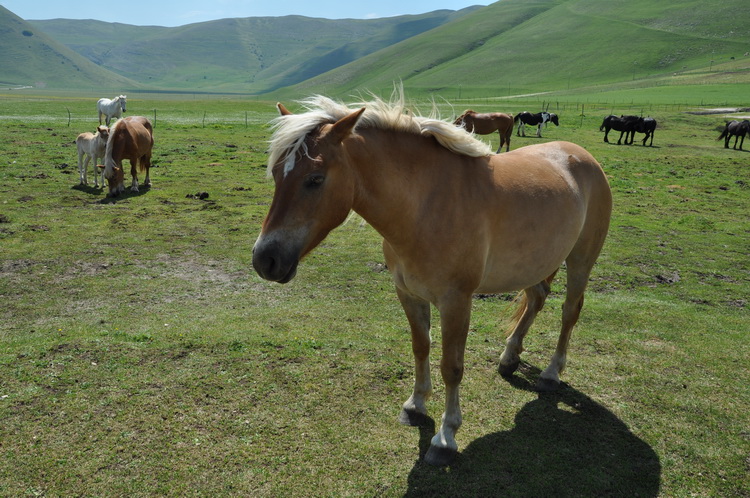 Pferde und im Hintergrund Casteluccio