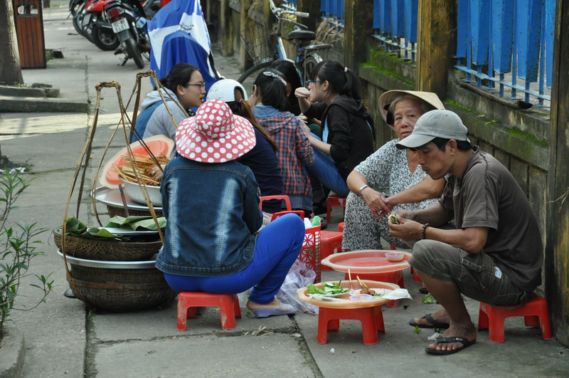 Kleine Garküche am Wegesrand. Von diesen Stühlchen kommt man ja kaum hoch