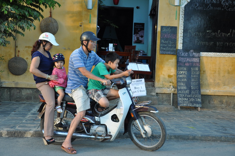 Die ganze Familie auf einem Moped. Den Schnappschuss haben wir ganz knapp noch hinbekommen, dann ging es los