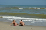 Wir haben uns 2 Fahrräder gemietet, in den Verkehr gestürzt und sind zum Meer geradelt. Bild: unterwegs