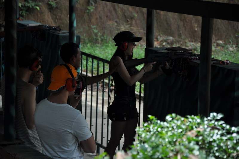 Besucher können gegen Dollar mit alten Kriegswaffen auf Pappziele schießen. Ein Spaß vor allem für Amis.