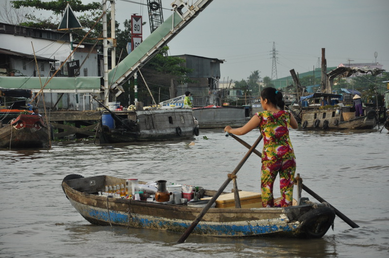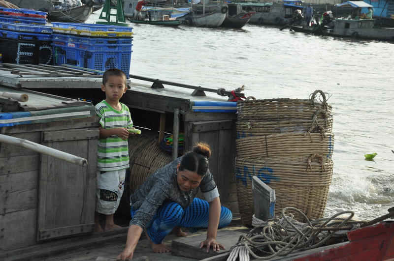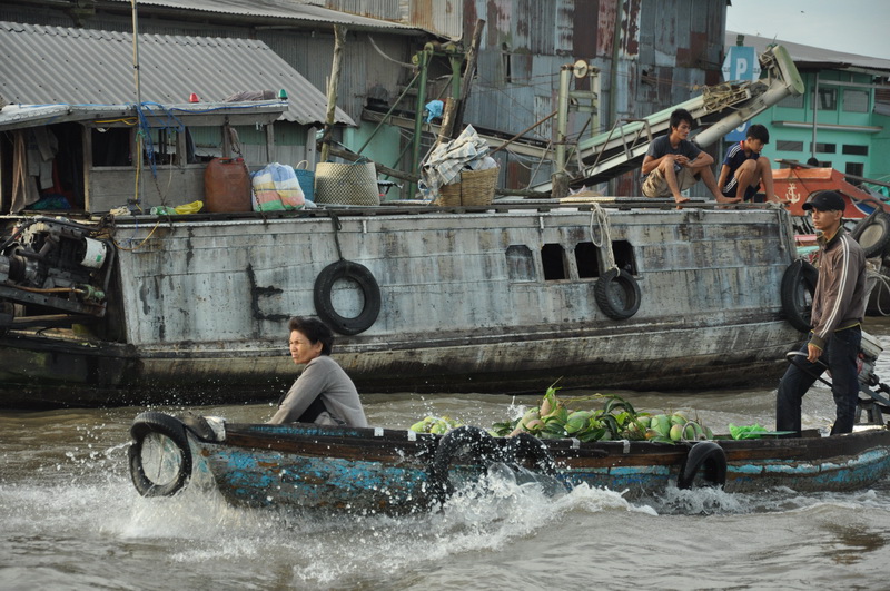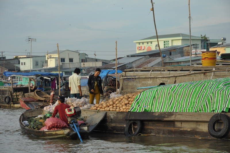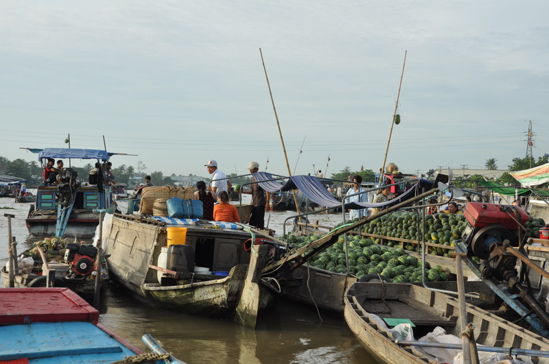 Noch vor dem Frühstück fahren wir mit dem Boot zu den schwimmenden Märkten