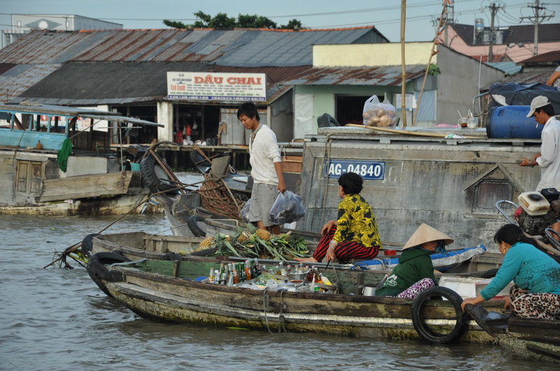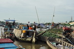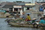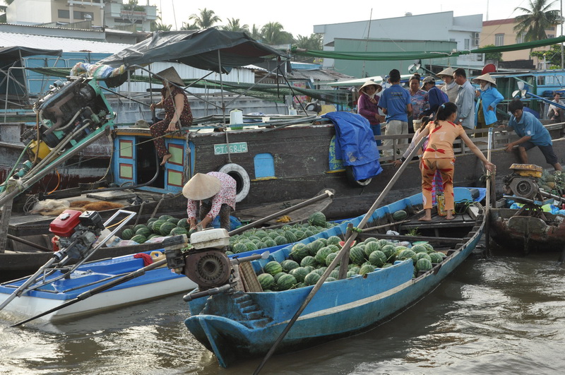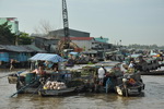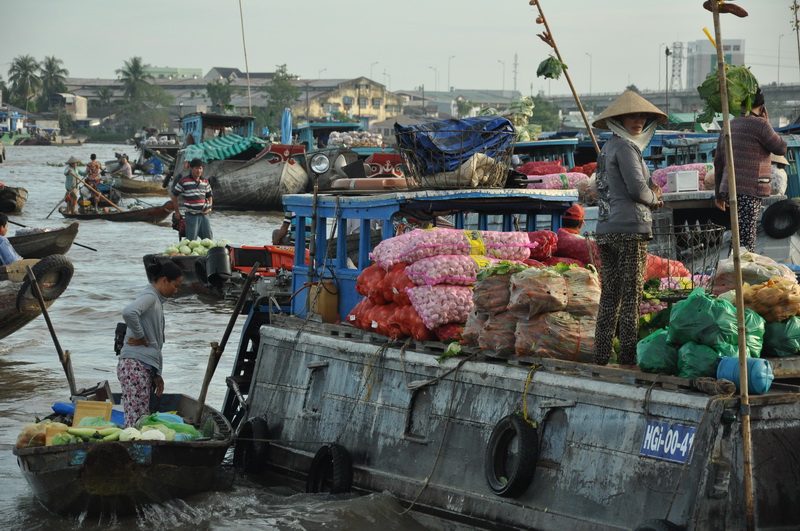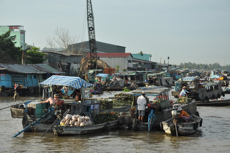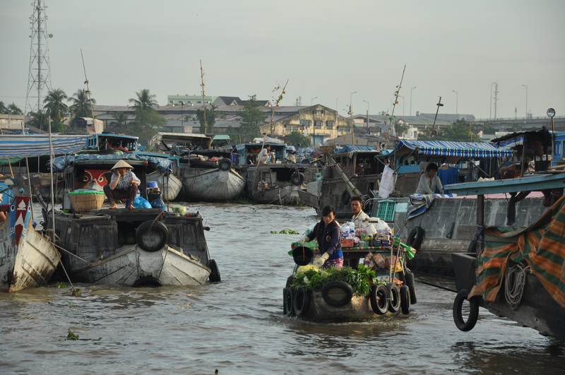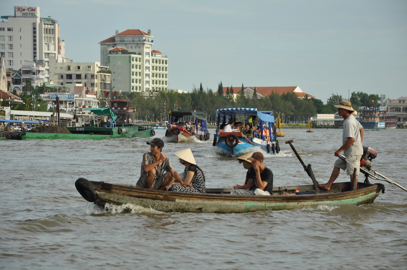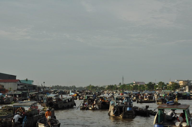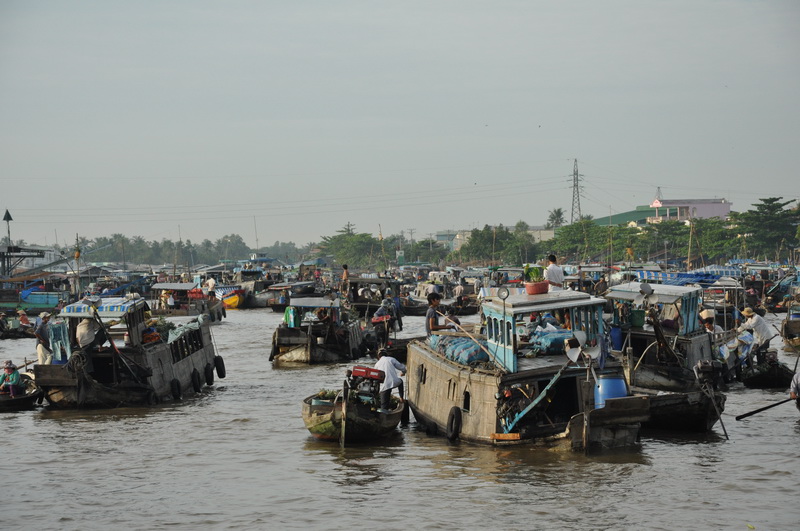 Der Verkehr auf dem Fluss nimmt zu, alle wollen zu den schwimmenden Märkten