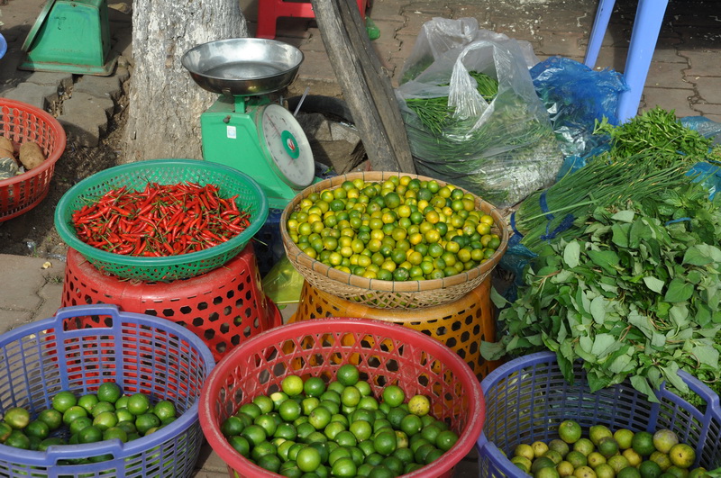 Der Markt von Chau Doc: Limetten und Peperoni