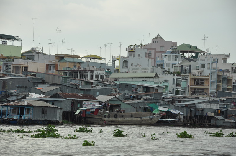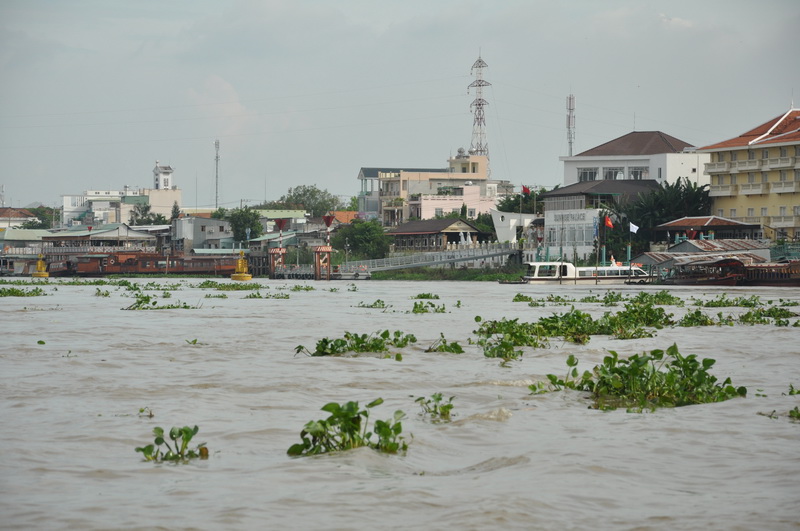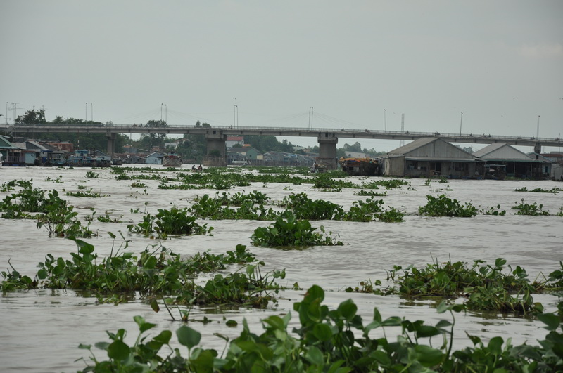 Sehr viele Schwimmpflanzen gab es hier auf dem Mekong