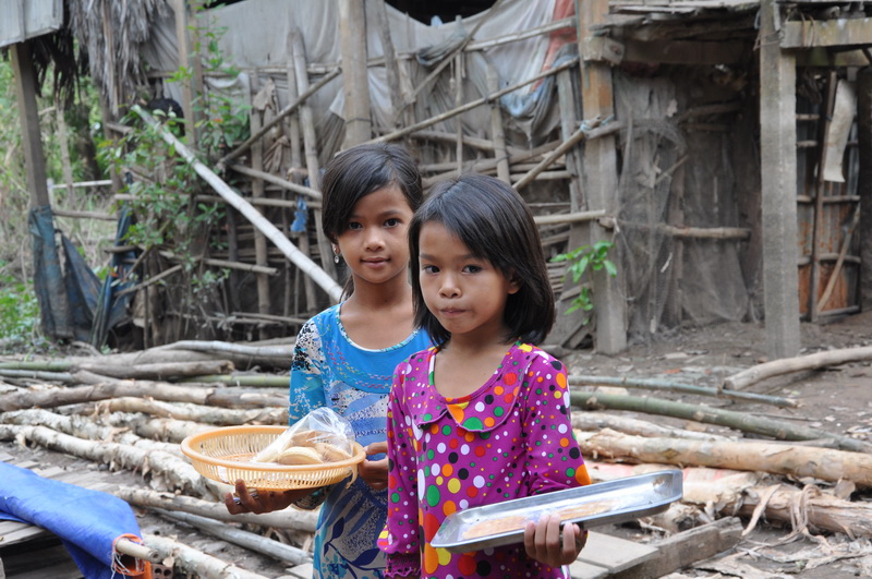 Die Mädchen haben an die Touristen Kekse verkauft.