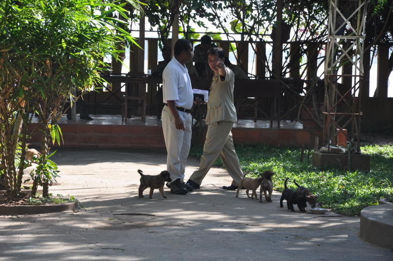 Erst mussten wir an der Grenze Vietnams aus dem Boot und hier dann noch mal.