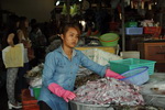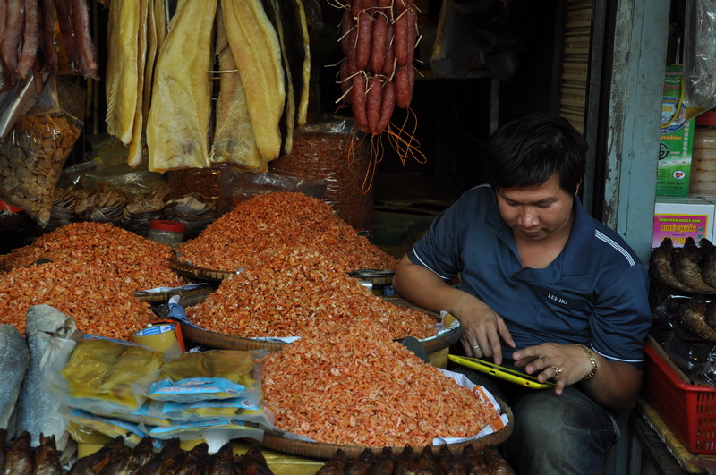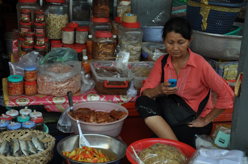 Fisch und Co. - Verkäuferin mit Handy (dafür reicht das Geld dann doch)