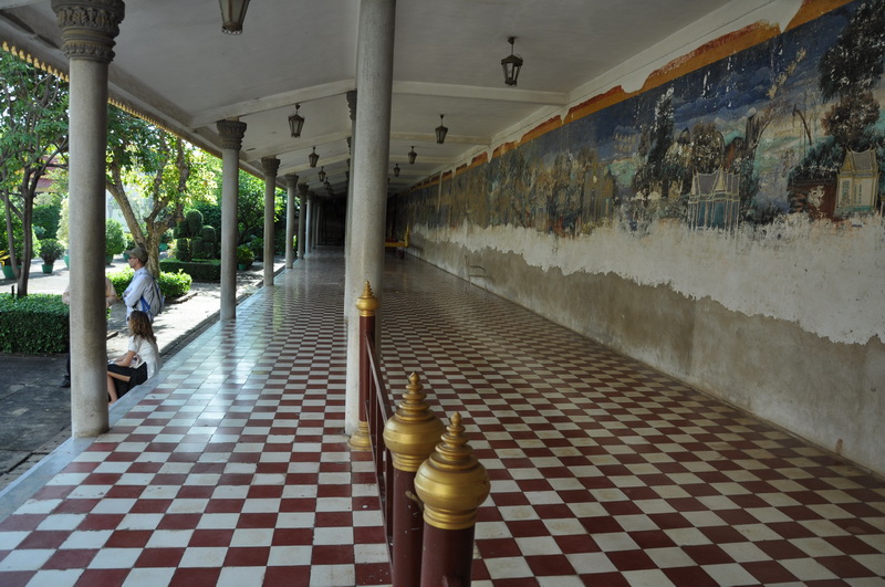Umschlossen wird der Bereich der Silberpagode von einem überdachten Wandelgang, an dessen Wand sich das hinduistische Ramayana Epos befindet.