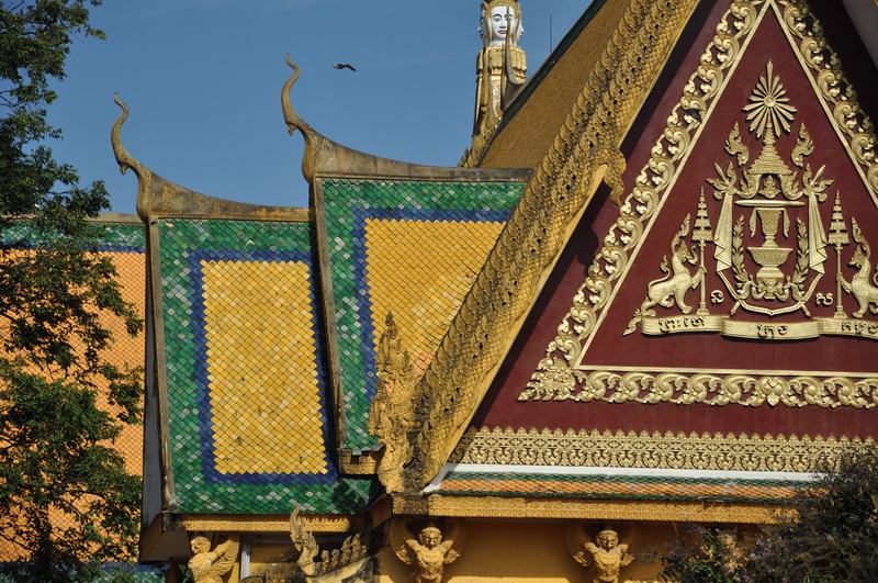 Der Fußboden der Silberpagode ist mit 5000 Silberfliesen bedeckt. Erbaut wurde sie 1892 unter König Norodom. Sie ist eines der wenigen Bauwerke die von den Roten Khmer weitestgehend verschont geblieben sind.