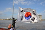 Es wird geflaggt. An der Promenade waren Flaggen vieler Länder