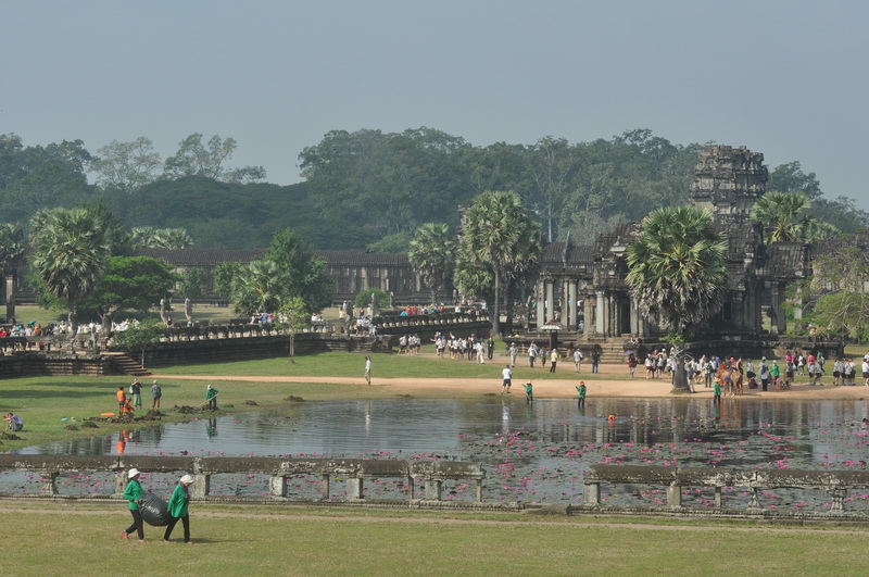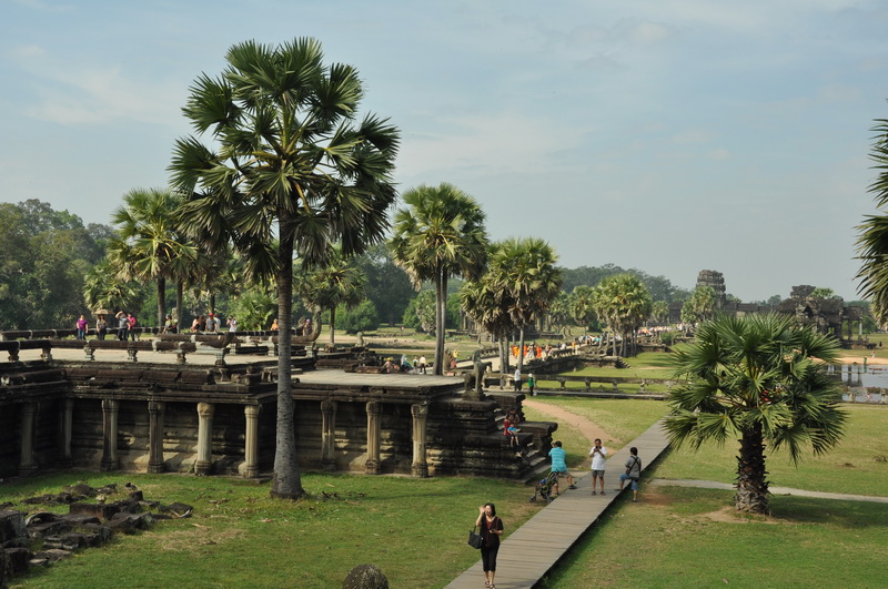 Angkor Wat war Bestandteil einer Stadt und liegt in einem 1500 x 1300 Meter großen Rechteck und bedeckt eine Fläche von knapp 2 Quadratkilometern. Der eindrucksvolle Wassergraben um die Anlage wird über einen Kanal aus dem Siem Riep gespeist.