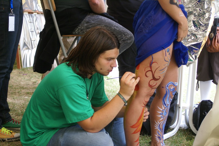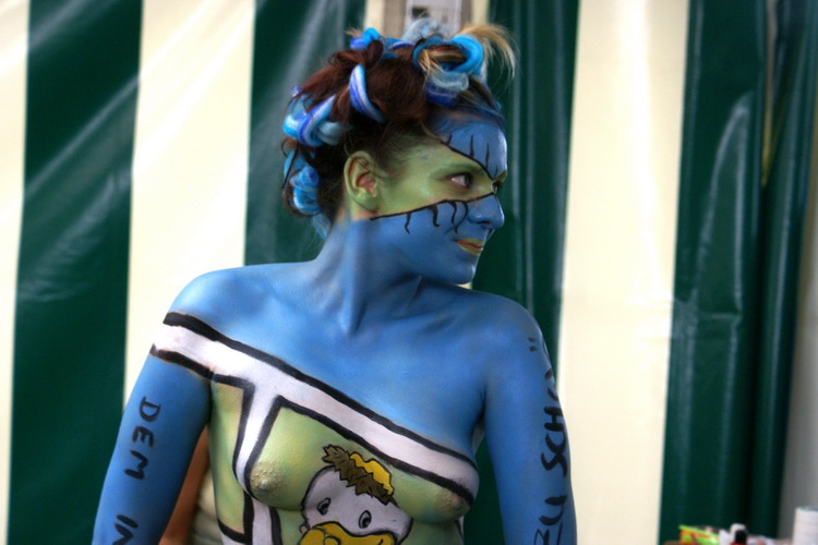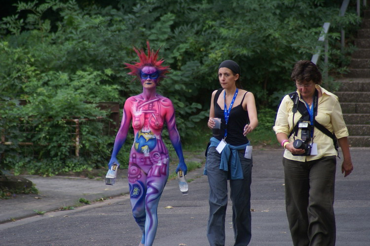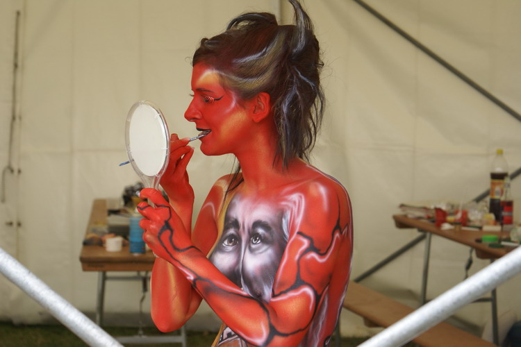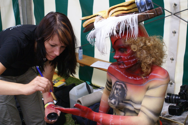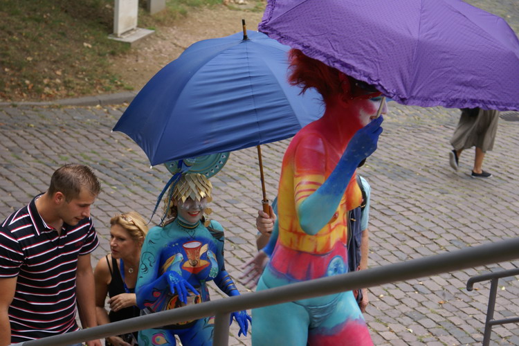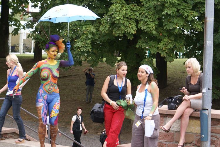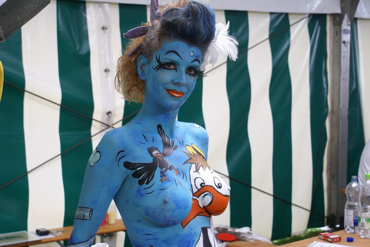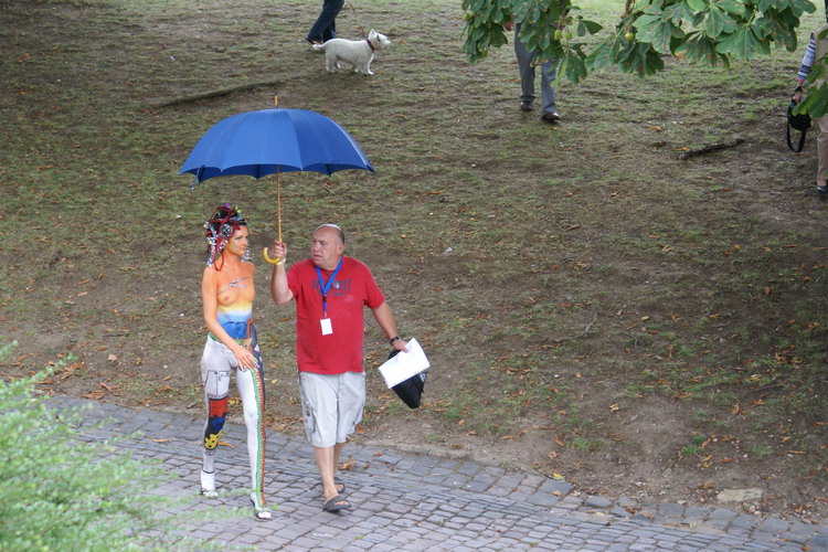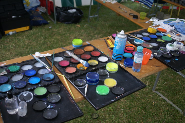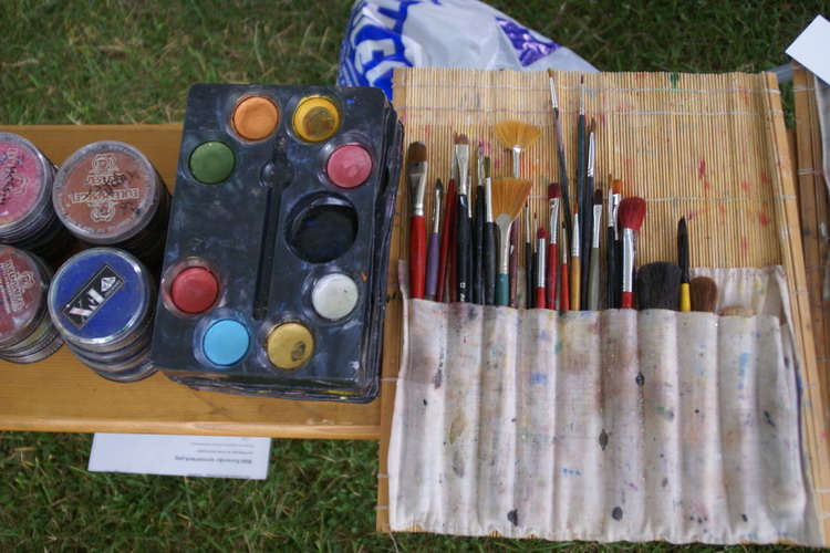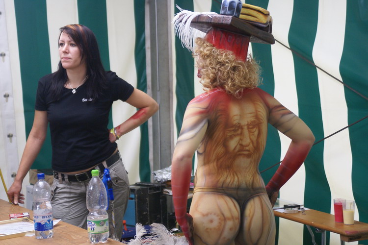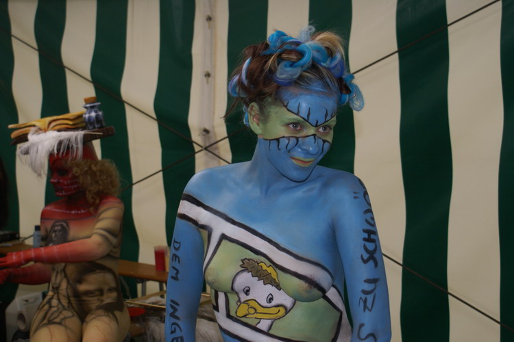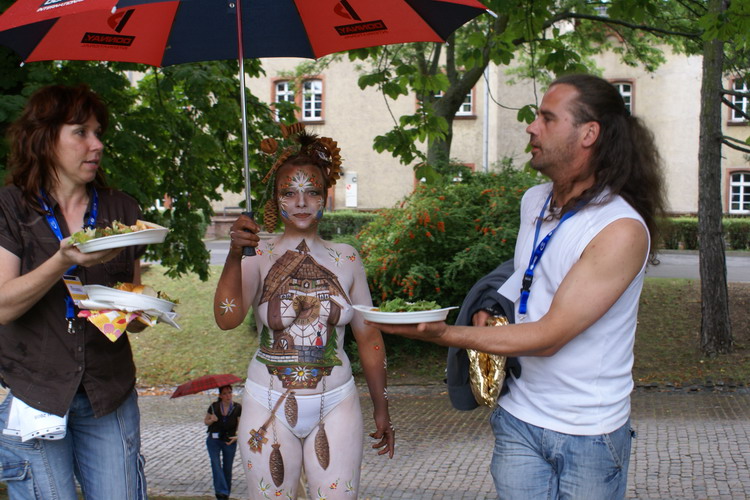 Es war ein regnerischer und kühler Tag im August. Klar, dass man die aufwändigen Bemahlungen vor Regen schützen muss.