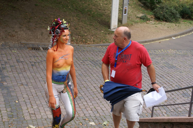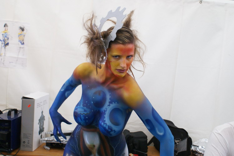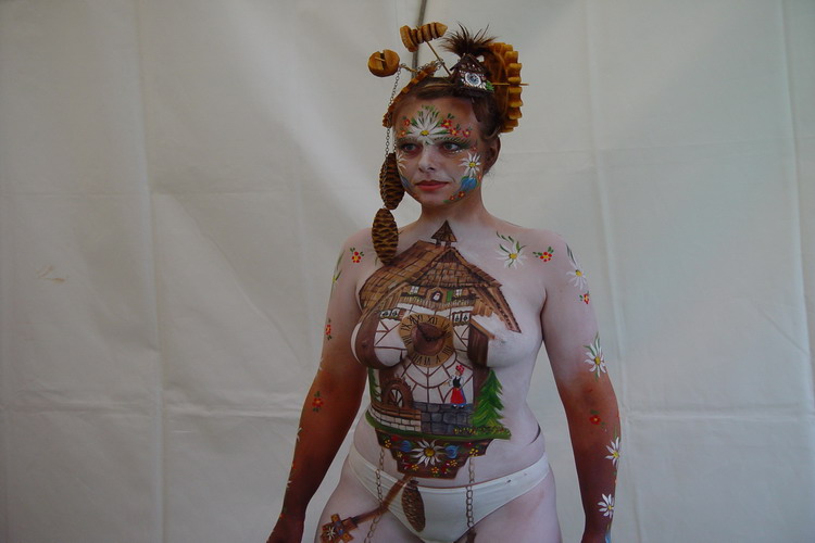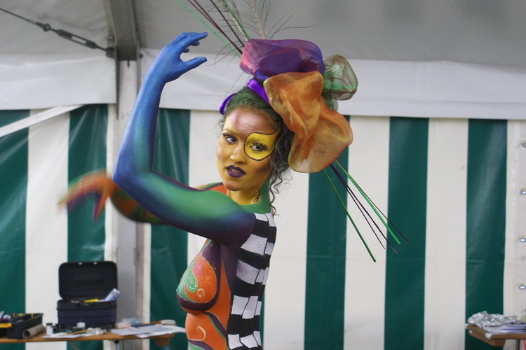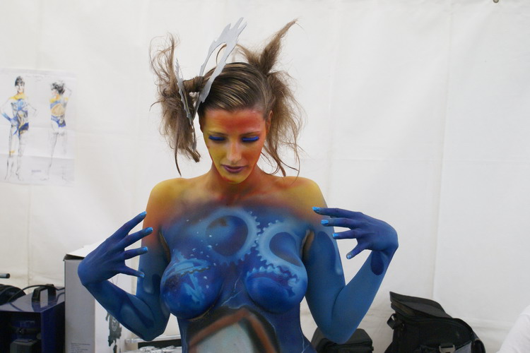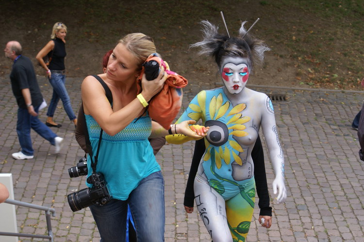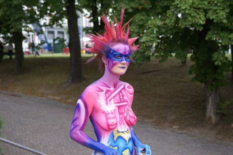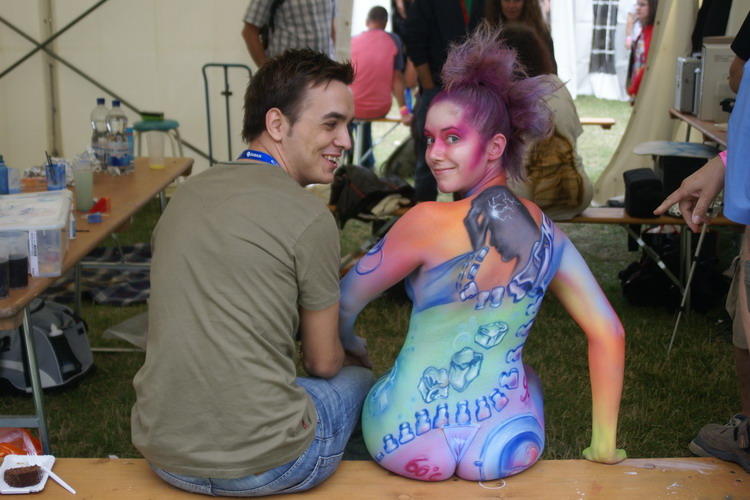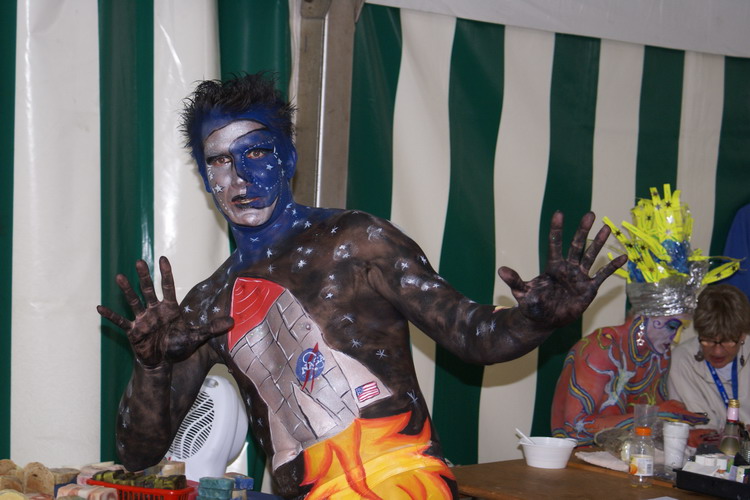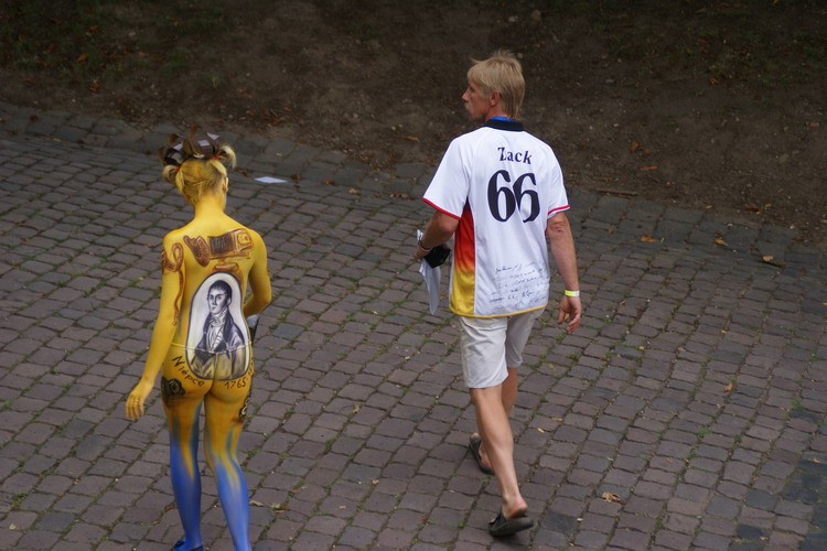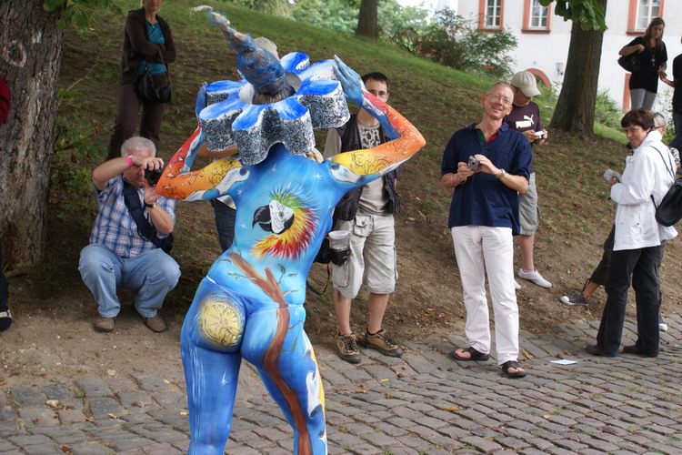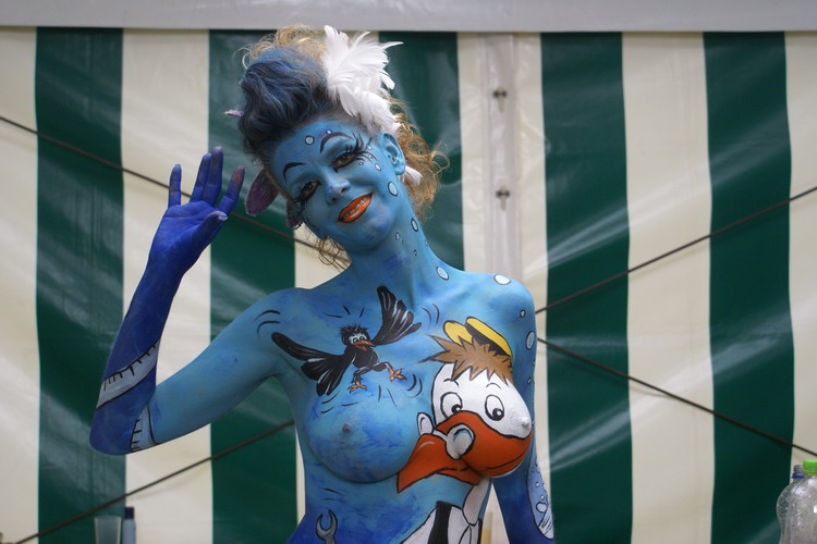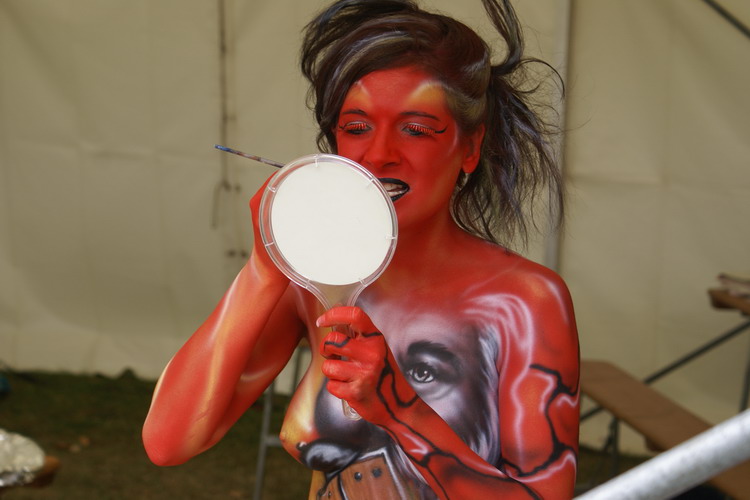 Es war ein regnerischer und kühler Tag im August. Klar, dass man die aufwändigen Bemahlungen vor Regen schützen muss.