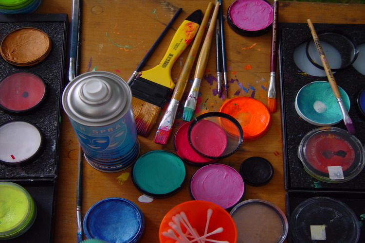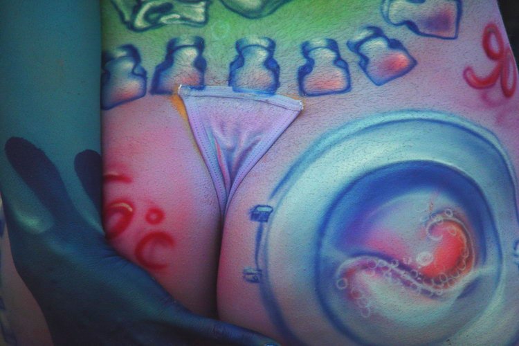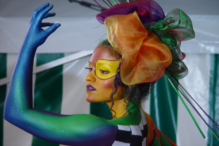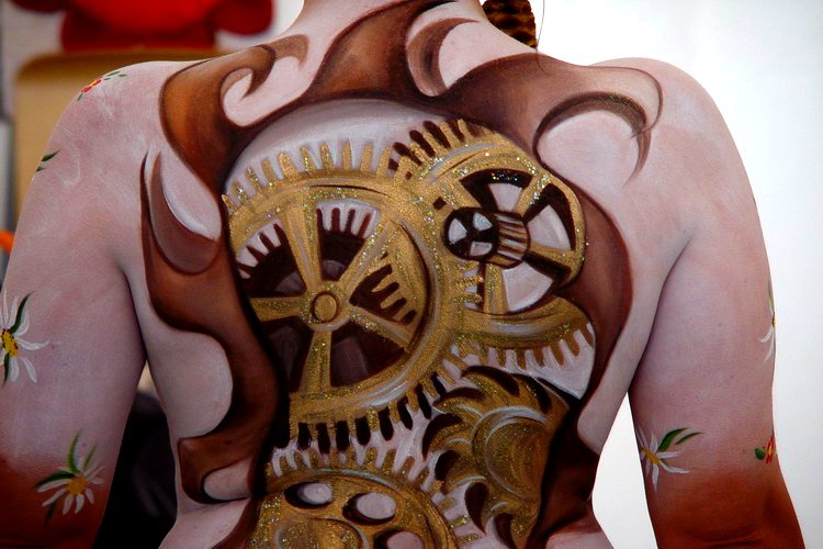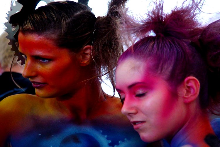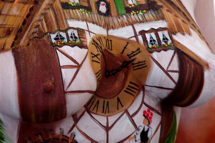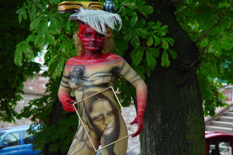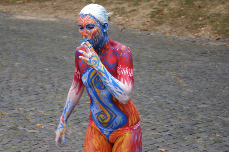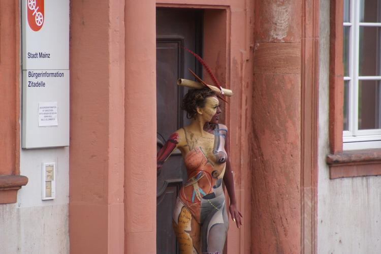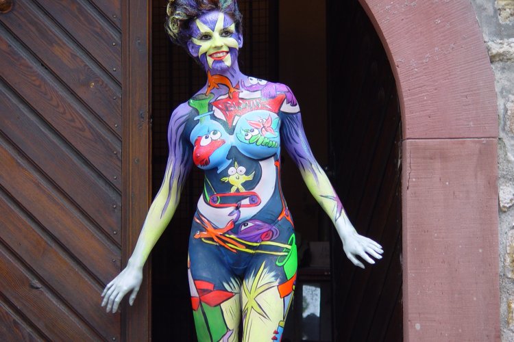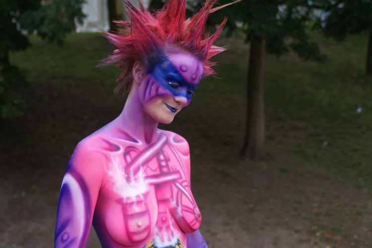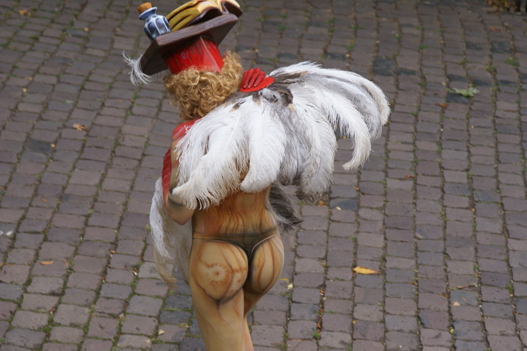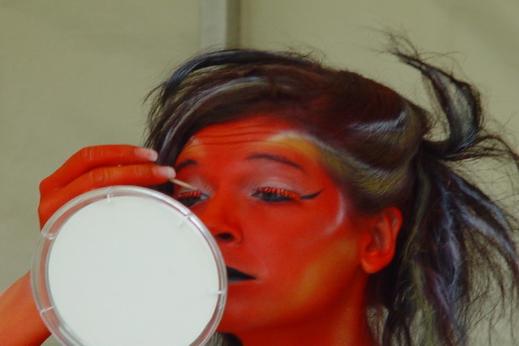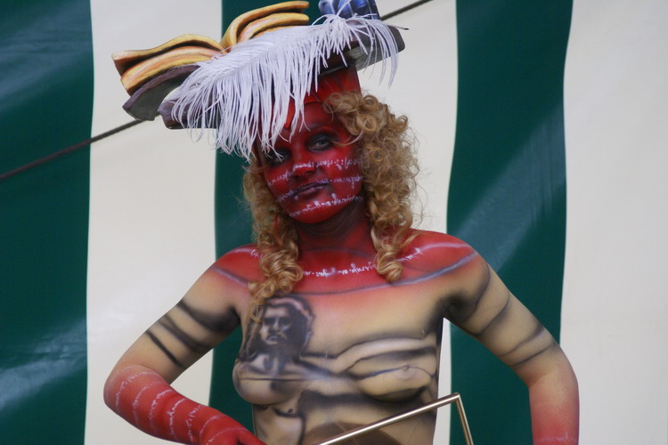 Es war ein regnerischer und kühler Tag im August. Klar, dass man die aufwändigen Bemahlungen vor Regen schützen muss.