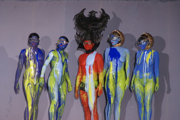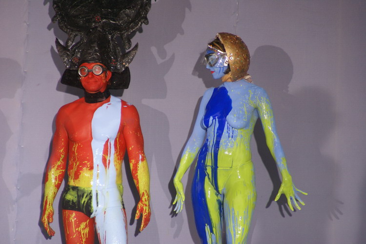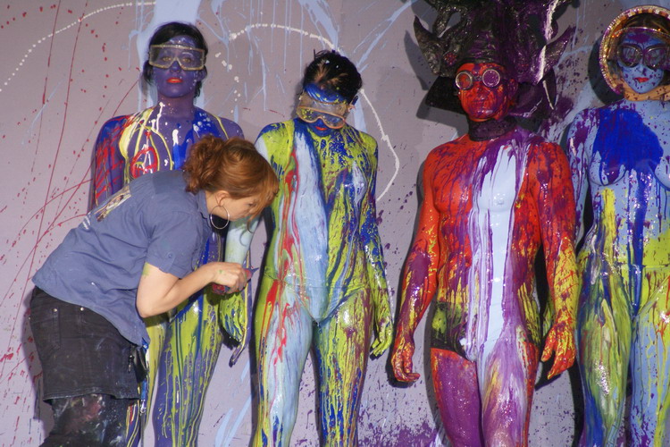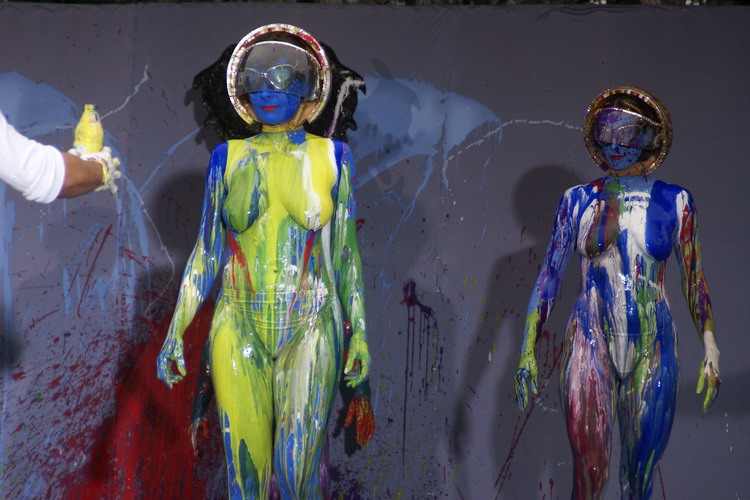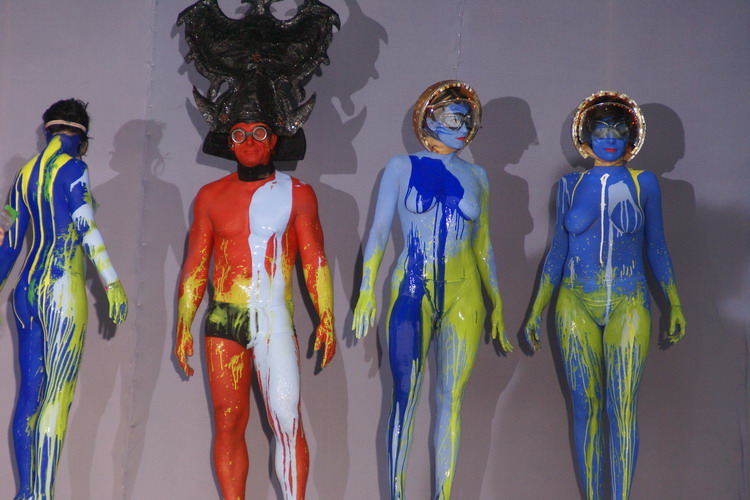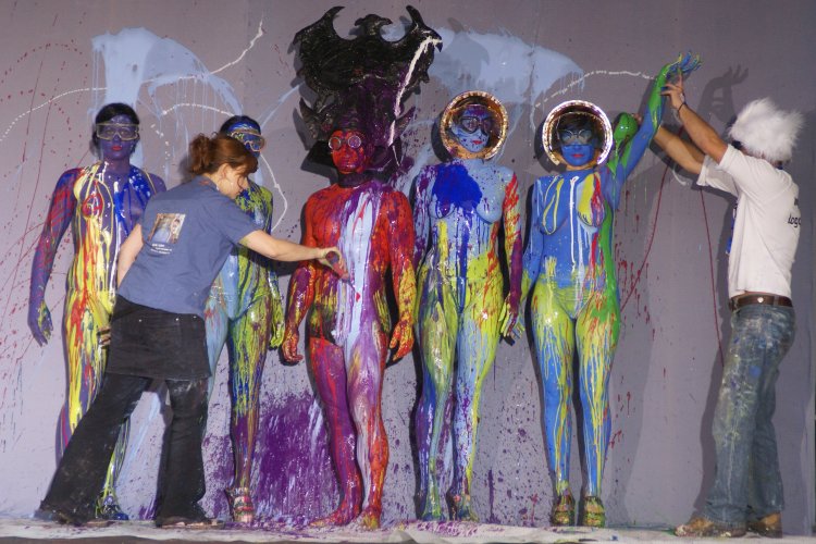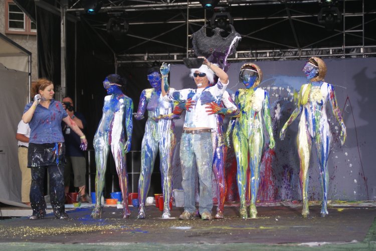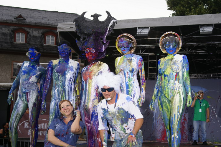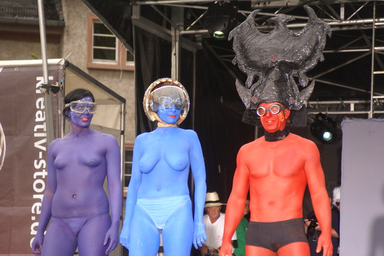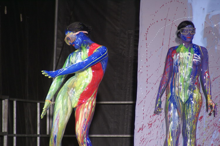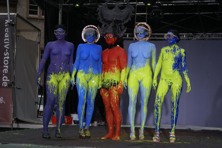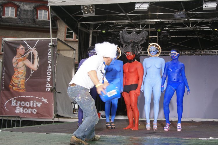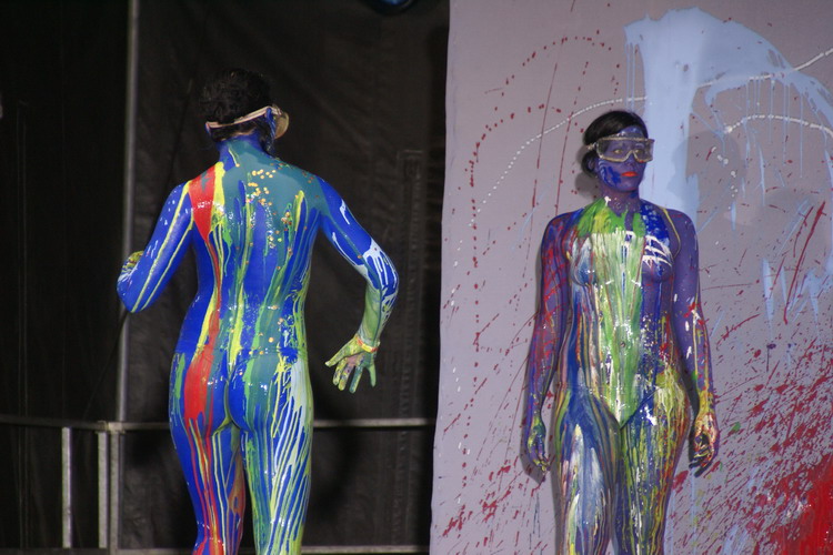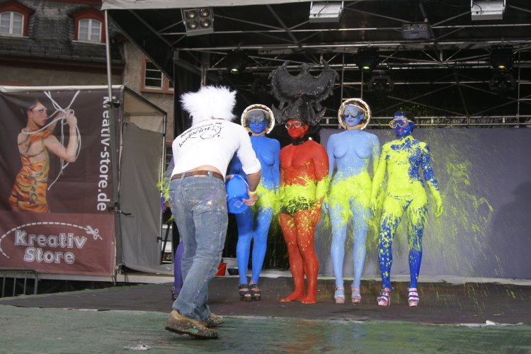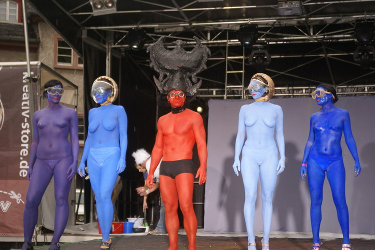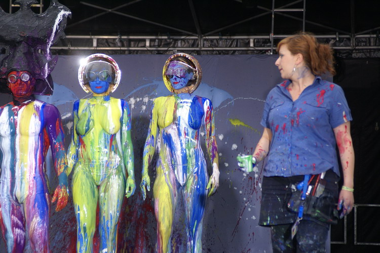 Es gab eine Live-Bemalung als Performance von 5 Modellen auf der Bühne durch 2 Künstler. Die Methoden waren schon etwas deftig!