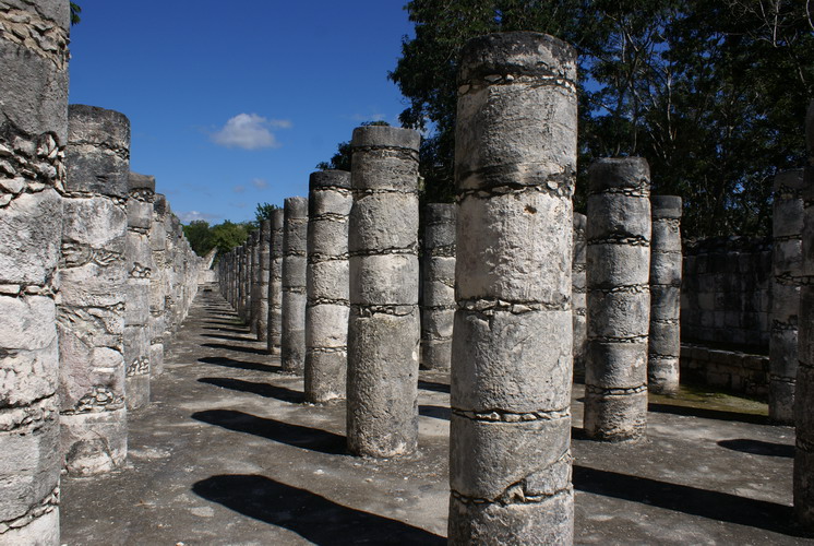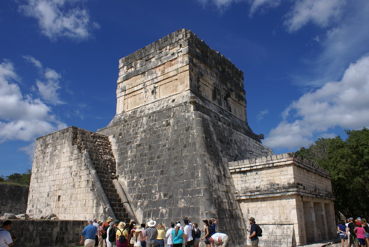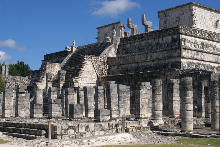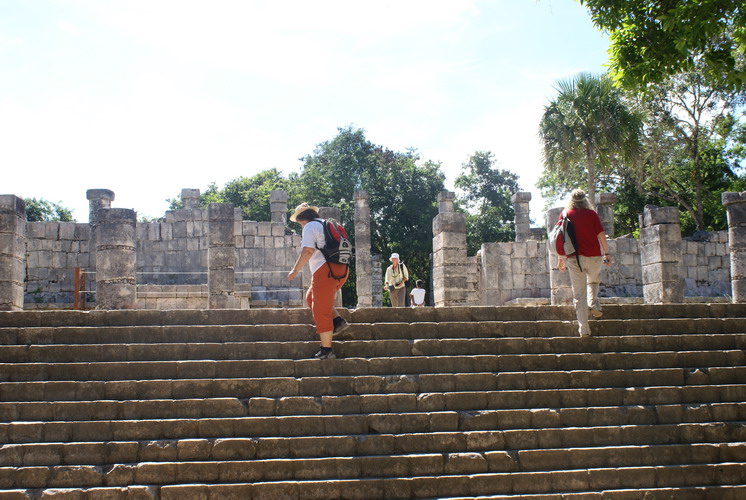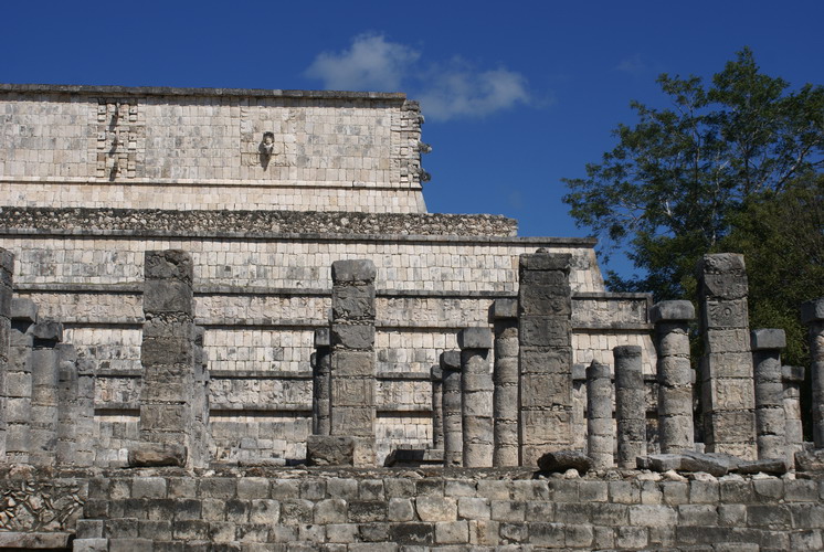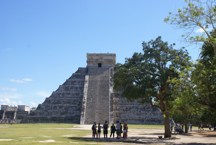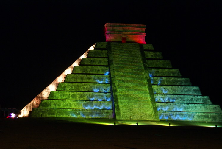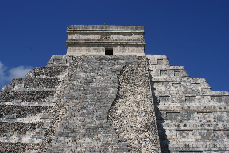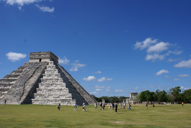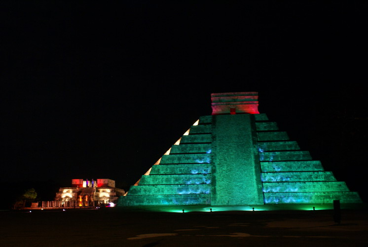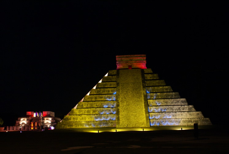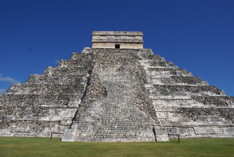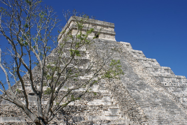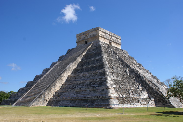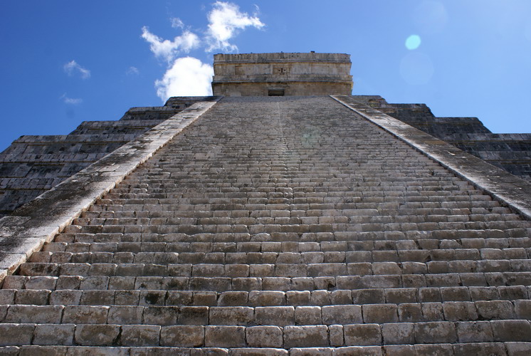 Das bedeutendste Bauwerk in Chichén Itzá, der Tempel der gefiederten Schlange. An ihm ereignet sich zur Tagundnachtgleiche im März und September ein einzigartiges Schattenspiel: Es erscheint, als krieche die steinerne Schlange die Treppenstufen hinab.