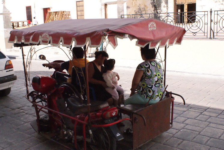 Fortbewegungsmittlel, bestehend aus einem Gestell mit Dach und 2 Mopeds. Das würde bei uns bestimmt nicht zugelassen werden.